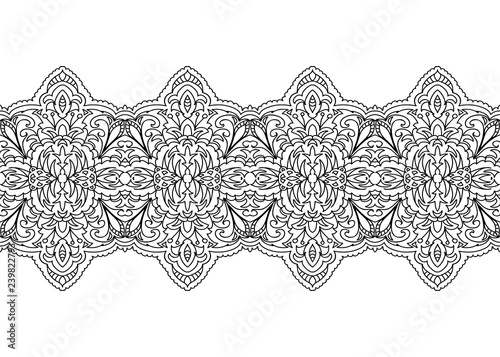 Decorative Lace Black White Seamless Coloring Page Border Isolated