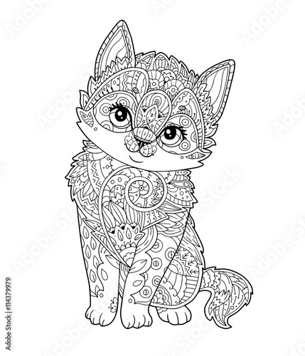 Zentangle Stylized Cat Coloring Page Of Cat Young Kitten